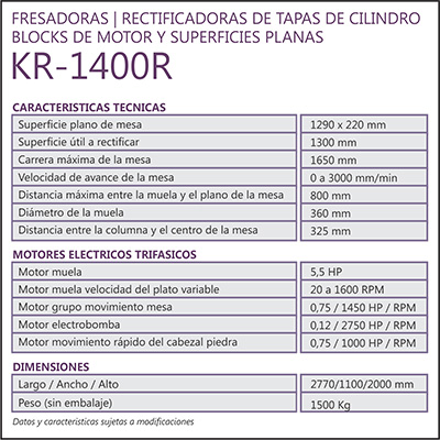 FRESADORAS, RECTIFICADORAS DE TAPAS DE CILINDRO, BLOCKS DE MOTOR Y SUPERFICIES PLANAS