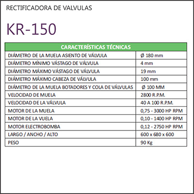 RECTIFICADORA DE VALVULAS Modelo KR 150 |